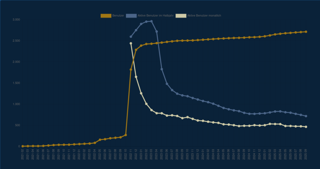 @wir @stereo hab ich jetzt nen Denkfehler oder warum kommt mir das falsch vor das die Anzahl Nutzer hoch geht und die Anzahl aktiver Nutzer pro Monat runter? Sollte das nicht auch mit ansteigen?