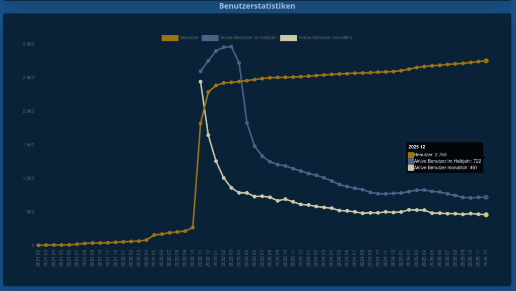 Die Anzahl der Matrix-User:innen stieg auf 2312 “echte” Accounts. Das sind 890 mehr als im Vorjahr.