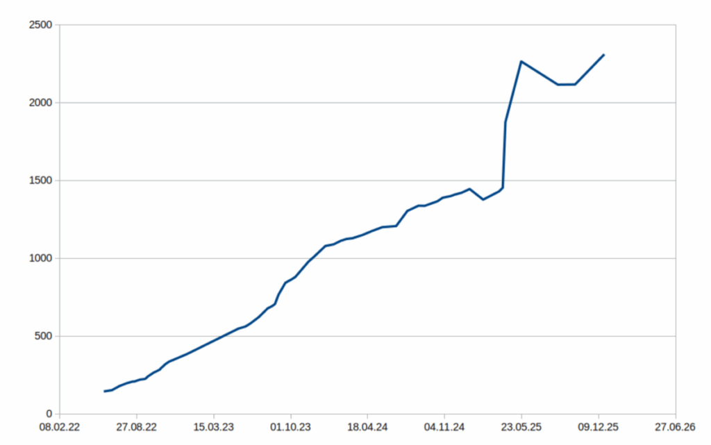 Ohne Änderung würde das also für weitere 28 Monate ausreichen, dank Eurer Spenden. 🙏